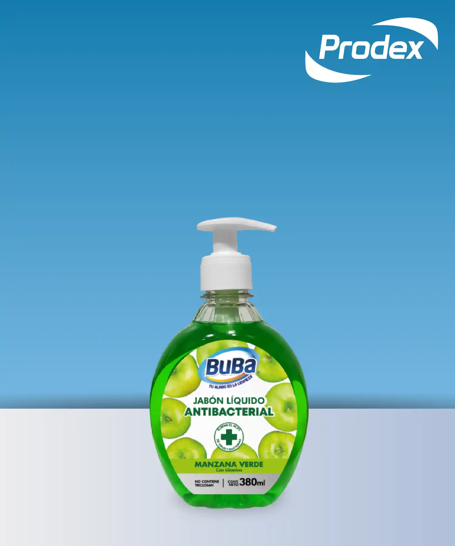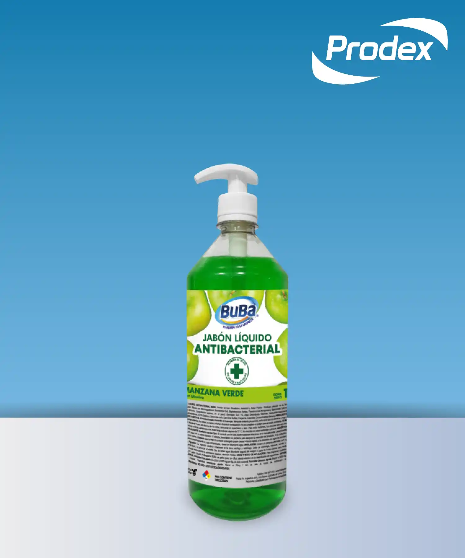Jabón Líquido Buba Antibacterial ManzanaEs un producto bactericida y fungicida, especialmente formulado para el lavado, eliminación de microorganismos y desinfección de las manos, Posee agentes bactericidas de amplio espectro que garantizan la eliminación de bacterias, hongos y levaduras. Además, evita la resequedad dejando las manos limpias, suaves y perfumadas.