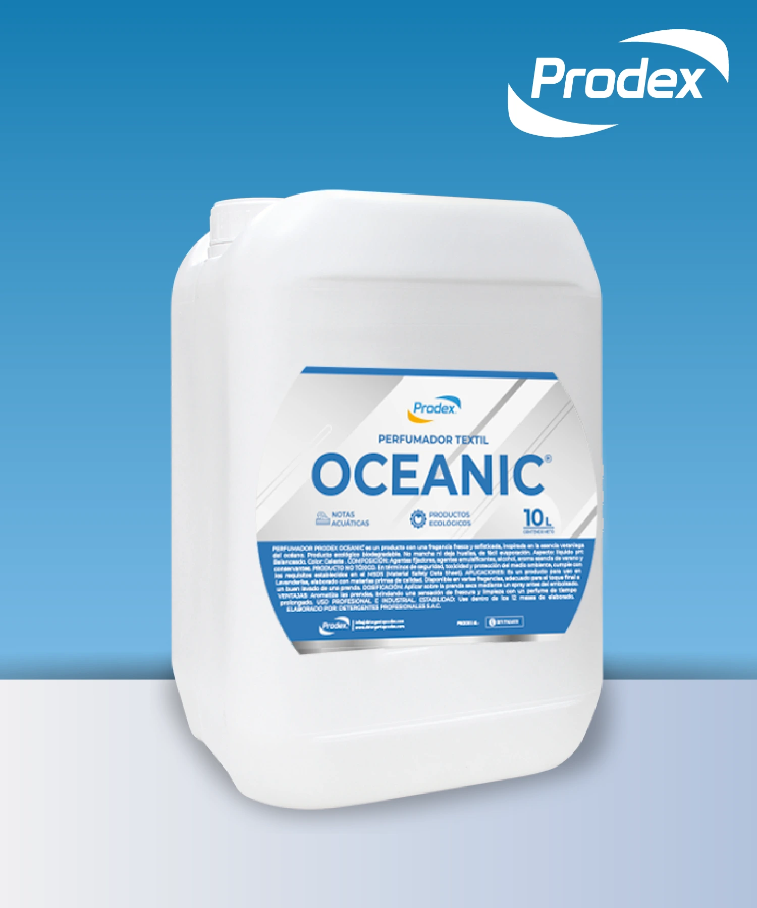Perfumador para ropa con Amonio Cuaternario, proporciona un agradable aroma de amplia duración y desinfección para el toque final de una prenda limpia. Composición: – Fragancia: Oceanic – Agentes fijadores – Agentes Emulsificantes. – Alcohol – Conservantes